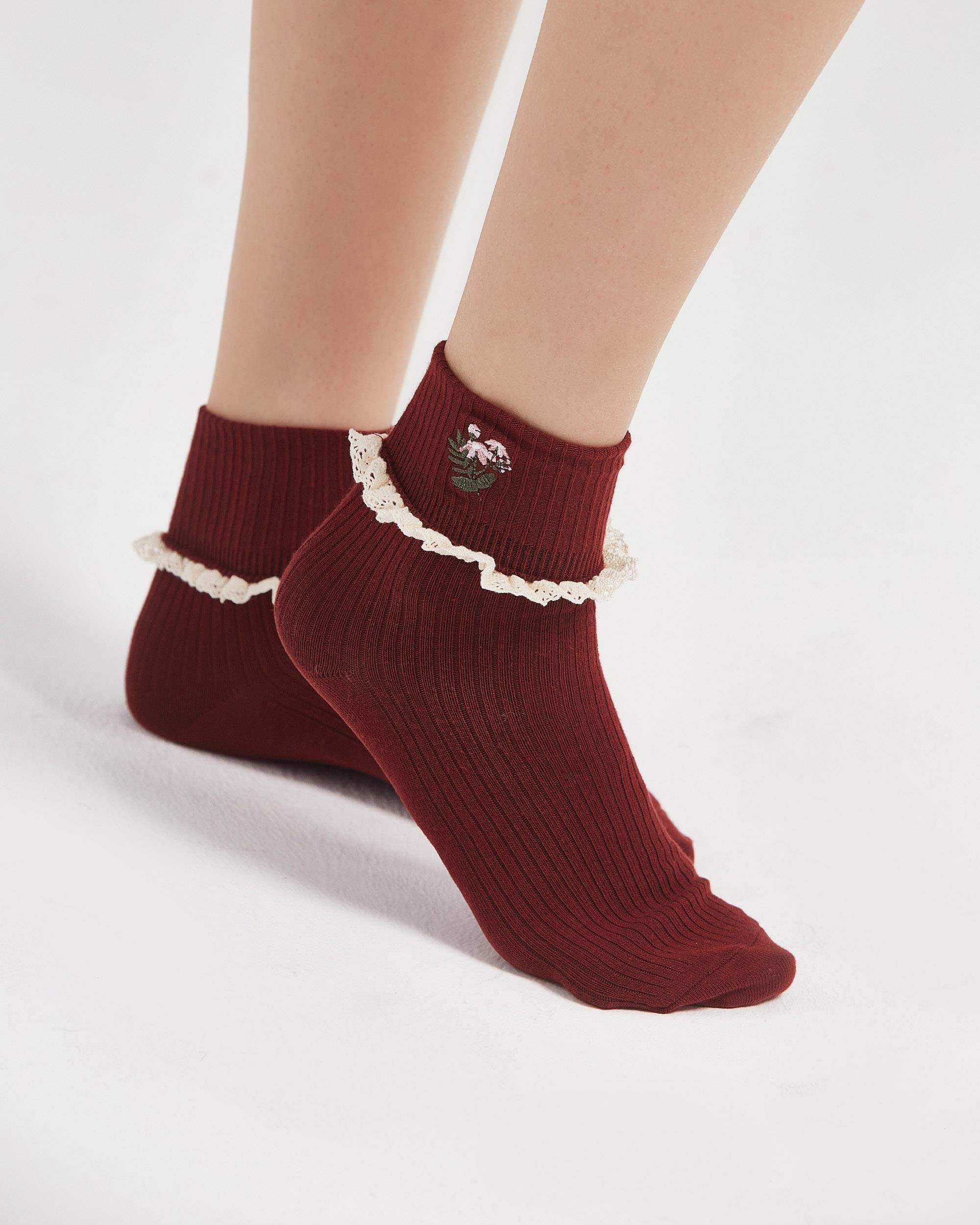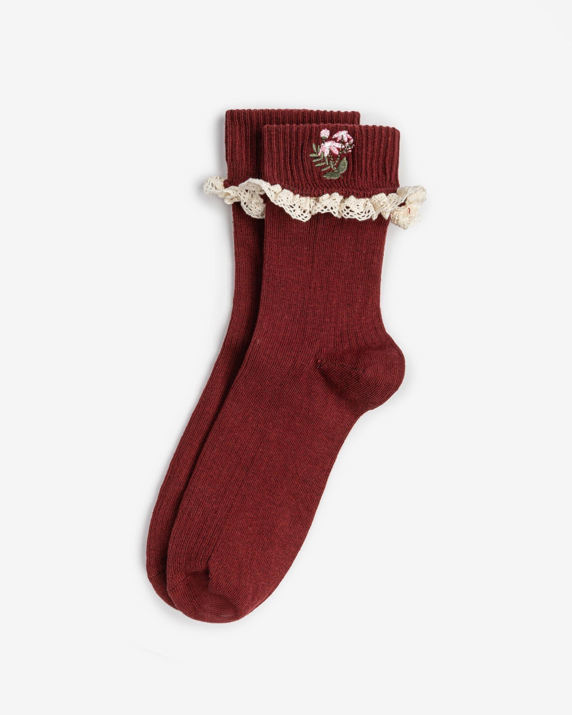 Kadın Dantelli Nakışlı Çorap Bordo modeli: