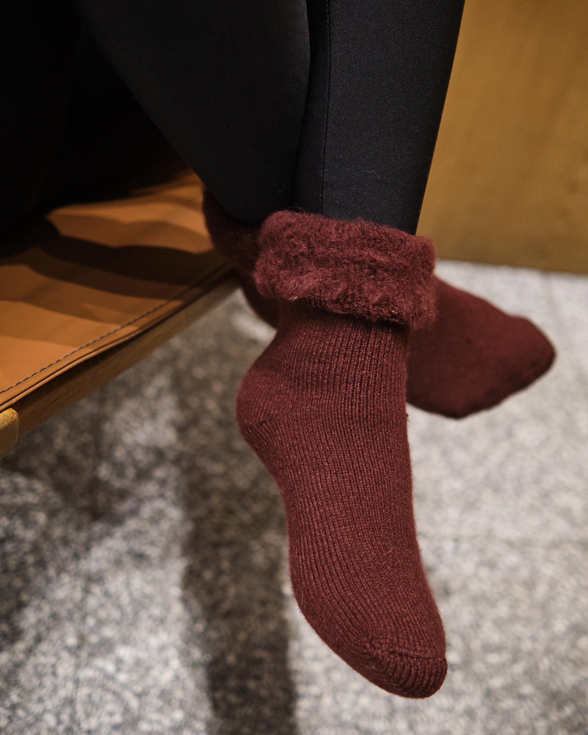 Zengin bordo tonu ile kış kombinlerinizi tamamlayan bu çorap, yalnızca görsel bir şölen sunmakla kalmaz; aynı zamanda gelişmiş termal yapısıyla soğuk günlerde sıcacık kalmanızı sağlar.
