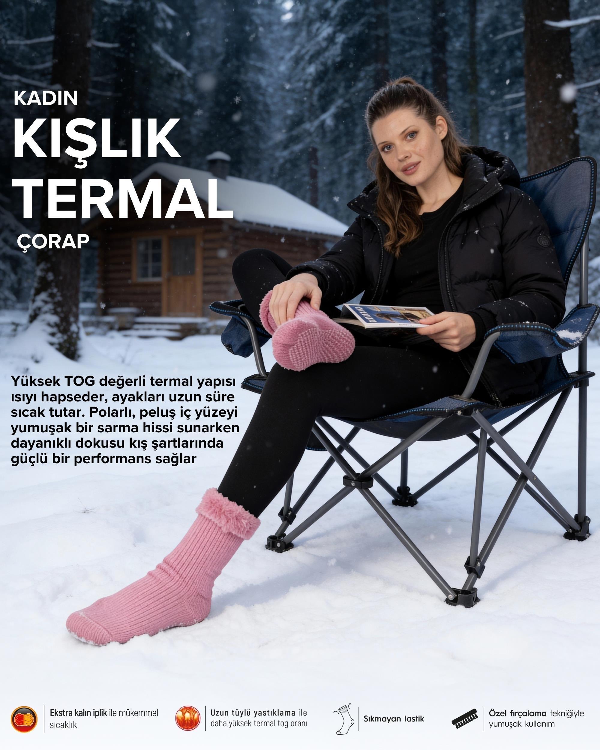 Zengin pembe tonu ile kış kombinlerinizi tamamlayan bu çorap, yalnızca görsel bir şölen sunmakla kalmaz; aynı zamanda gelişmiş termal yapısıyla soğuk günlerde sıcacık kalmanızı sağlar.